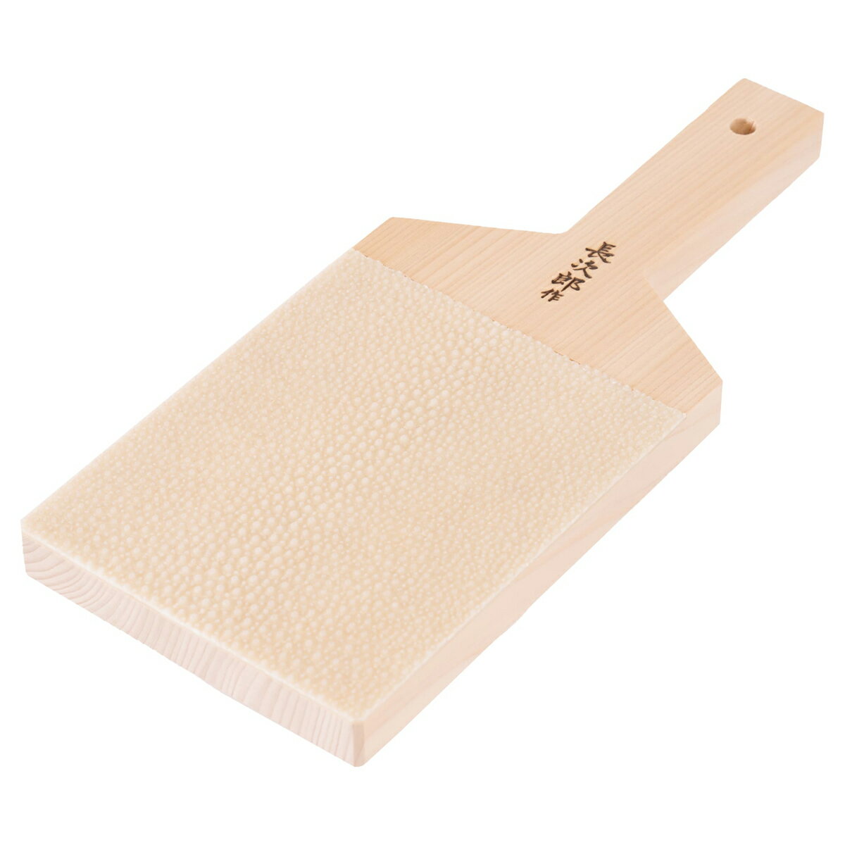 • サメ皮を板に張り付けた伝統的なおろし道具。