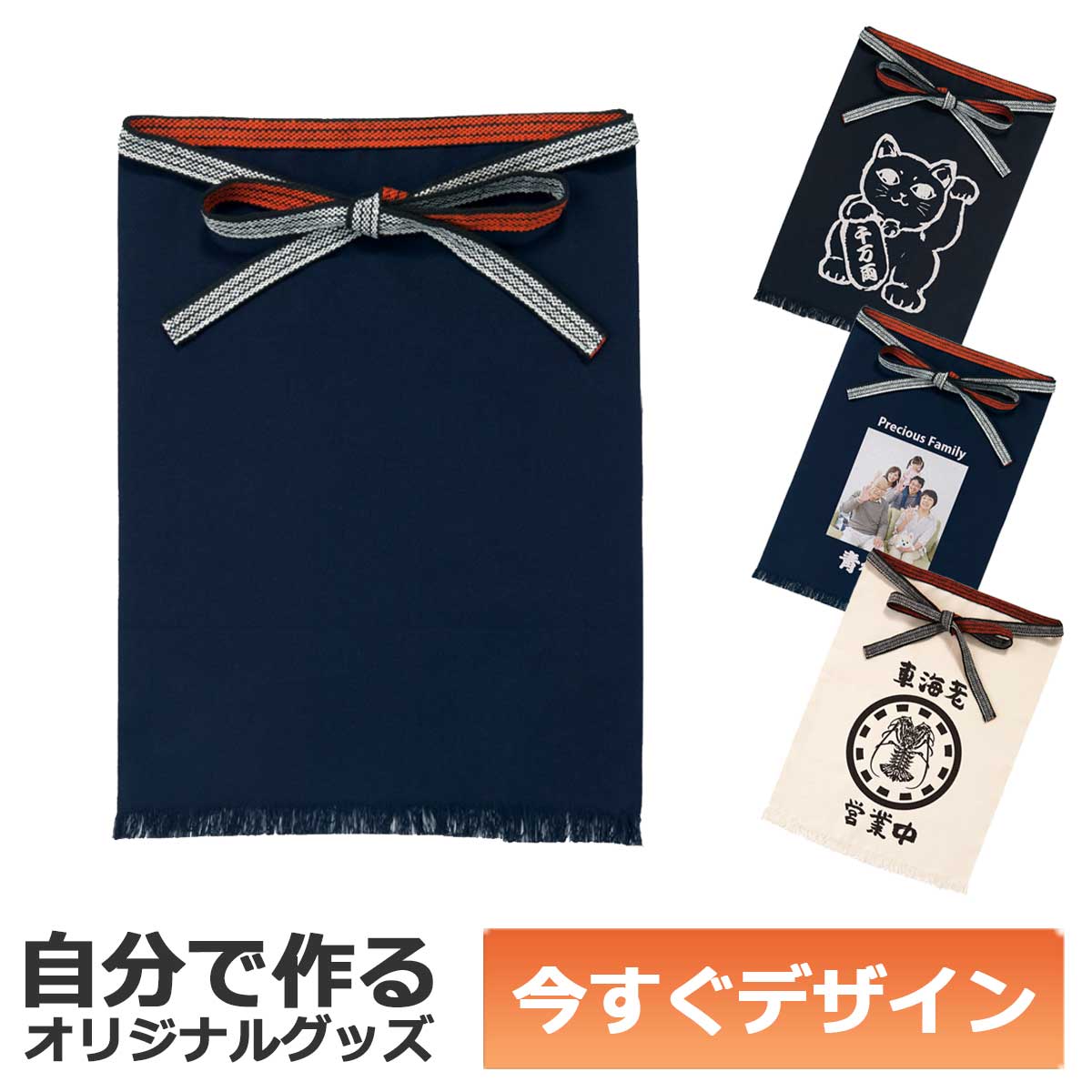 本格的に寿司や和食を演出したいなら、厚手の帆布や紺色のロング丈が定番です。