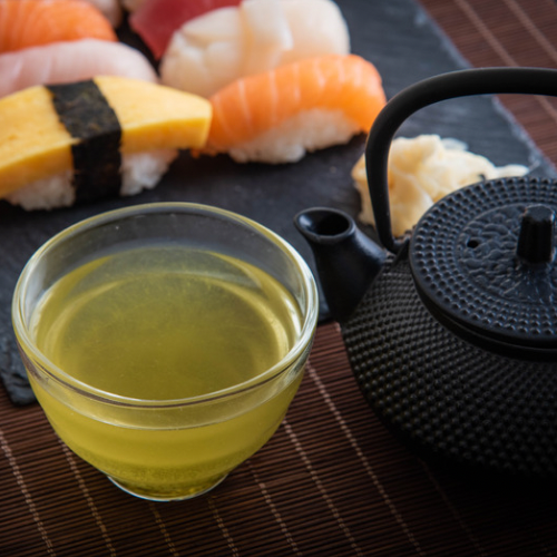 寿司を食べたあと、湯呑みのお茶で口をさっとすすぐ感覚で飲むのが一般的。脂を流して味覚をリセットする役割がありました。